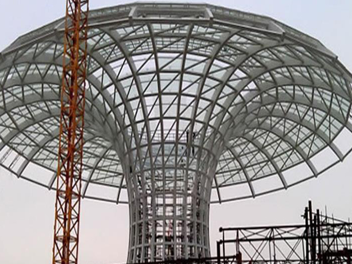 二、球形网架结构因其结构新颖,受力合理,自重轻、用钢量低等优点。如大型体育场馆球形菏泽螺栓球网架、公共场馆球形网架、电厂菏泽螺栓球网架、水泥工业球形网架、仓储物流球形网架、菏泽干煤棚工业球形网架、菏泽收费站菏泽加油站球形网架、展览中心、影剧院、商场、航站楼、候车厅、工厂菏泽车间、仓库、电视塔等球形螺栓球节点网架。国内球形网架结构主要分为:菏泽焊接球节点网架及螺栓球节点网架两种。螺栓球节点网架其构件工厂内加工量较大,现场安装便捷,适用于现场工期紧,菏泽施工条件、用电量受制约,网架形状复杂、菏泽杆件定位困难的异形结构。螺栓球节点球形网架系统基本由菏泽杆件、螺栓球、支撑支座等组成。按照节点形式可分为交叉菏泽桁架体系、四角锥体系、三角锥体系等。支撑方式多为固定支座支撑。对于大面积、大跨度及有特殊受力或伸缩要求的网架结构可采用橡胶支座、滑移支座、球铰支座等支撑形式,以满足结构自身的受力稳定、均衡,便于内力释放等设计要求。